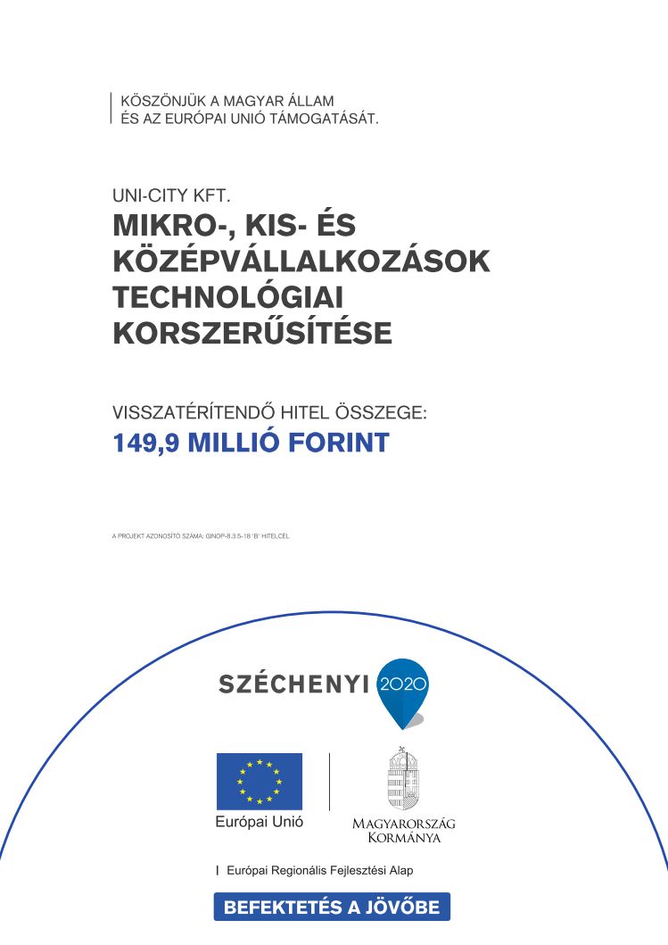 A projekt címe: Termelési kapacitás bővítése az UNI-CITY Kft.-nél